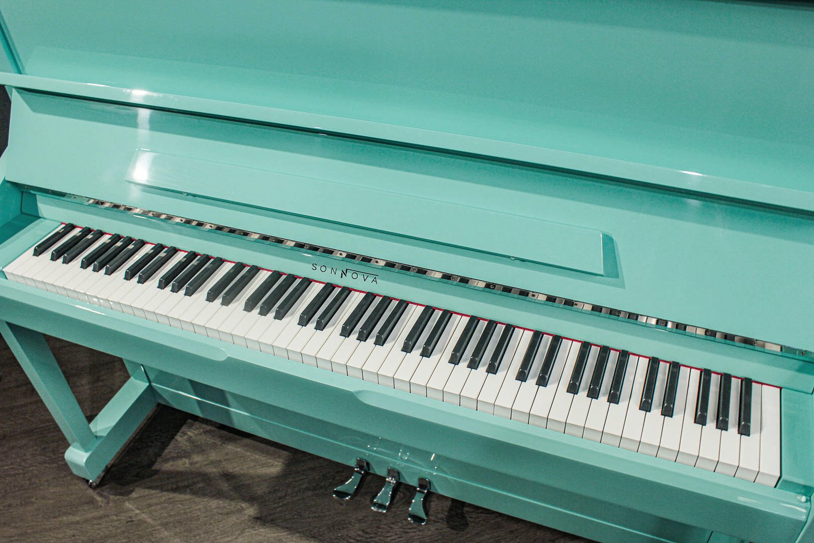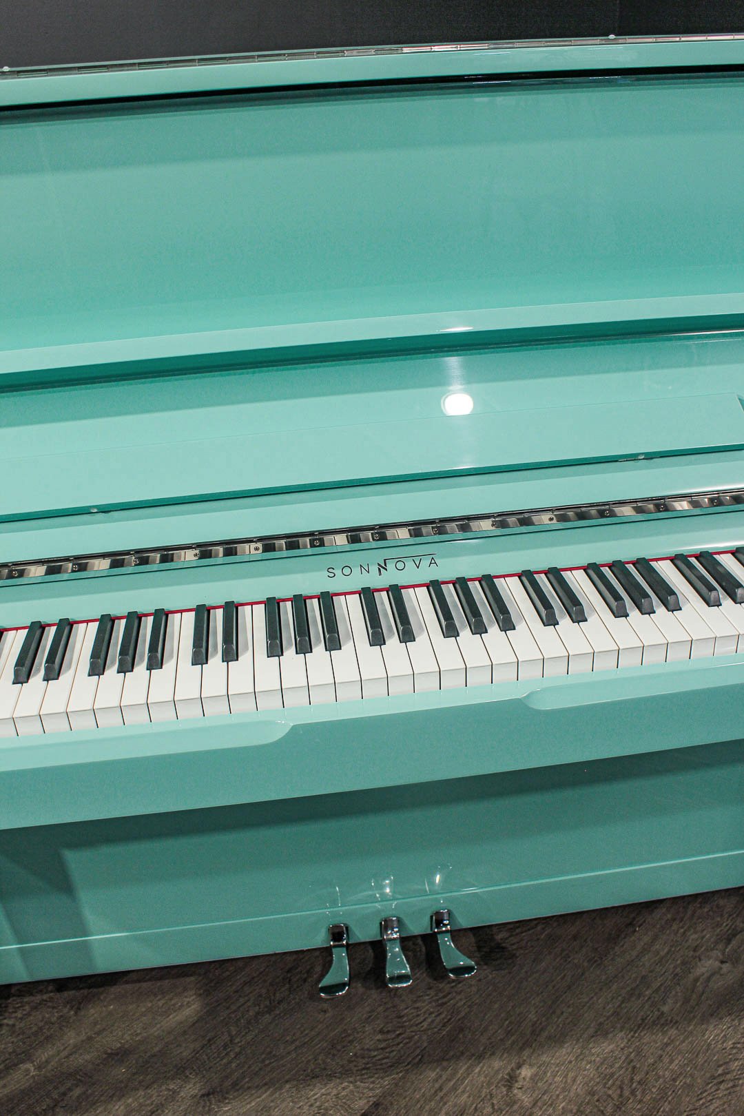 Le piano droit Sonnova U48 Studio Piano droit combine la puissance, la grâce et les performances d’un piano droit de studio de 48” pleine grandeur avec un style épuré et contemporain qui s’intègre dans n’importe quel espace de vie. Superbe finition bleu Sainte-Lucie haute brillance, superbes pédales, quincaillerie et accents en nickel.